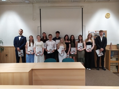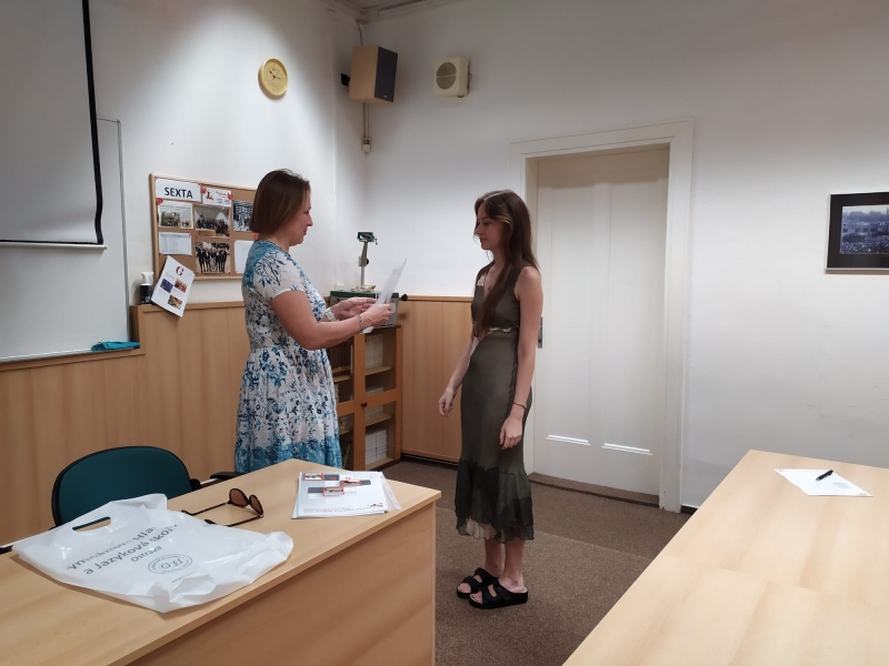 Ve středu 18. 6. proběhlo v multimediálním sále předání vysvědčení o státní jazykové zkoušce dvanácti studentům 3. ročníků, kteří uspěli u písemné i ústní části. Jeden žák bude ústní část opakovat na podzim.