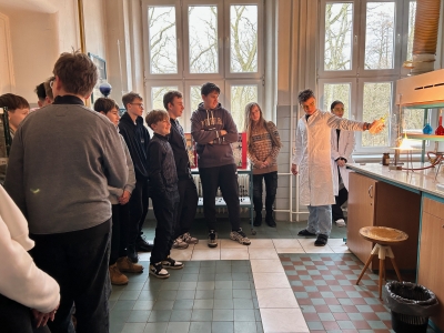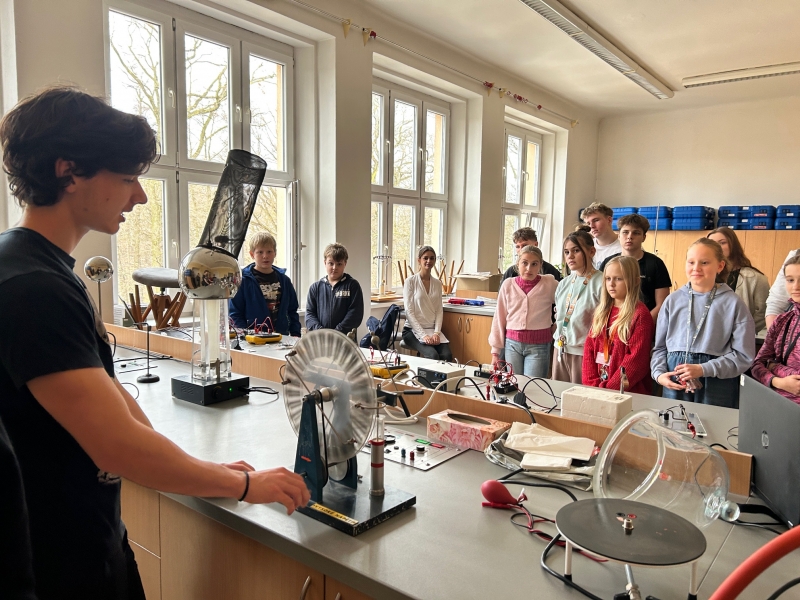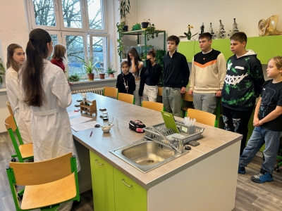 V týdnu před Vánocemi se na našem gymnáziu tradičně uskutečnil Den otevřených dveří pro zájemce ze základních škol. Akci navštívili žáci pátých a devátých tříd v doprovodu svých učitelů. Návštěvníci prošli sedmi stanovišti – v ředitelně je přivítal ředitel školy Mgr. Radek Musiol, který je seznámil s plánovanou rekonstrukcí školy, dále zavítali do laboratoří biologie, fyziky a chemie, kde naši gymnazisté představili zajímavé pokusy, a do učeben cizích jazyků – angličtiny, němčiny a francouzštiny. Každý si z akce odnesl to, co potřeboval – užitečné informace o studiu, představu o fungování školy nebo příjemný zážitek z vánočně vyzdobeného prostředí.