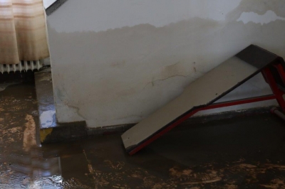 Podzimní povodeň zdevastovala naši školní posilovnu. Všude bylo 60 až 80 cm vody. Celá nová podlaha zmizela pod nánosem bahna. Stroje zrezivěly a jejich polstrování bylo zcela zničeno.