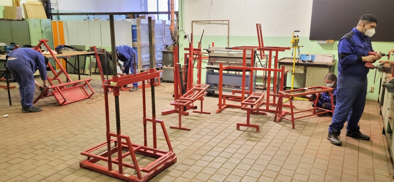 Pomocnou ruku nám nabídla Střední škola Bohumín. Žáci 1. ročníku oboru obráběč kovů a 2. ročníku oboru zámečník se pod vedením svého učitele odborného výcviku pustili do práce. Čekal je nelehký a fyzicky náročný úkol. Obrousit, natřít a celkově zrenovovat naše posilovací stroje, kterých opravdu nebylo málo. Začali hned po Vánocích a tento týden se podařilo vše dokončit.