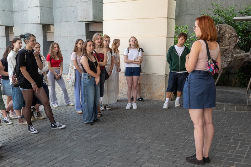Ve středu 25. června 2025 se skupina našich studentů z různých tříd gymnázia vydala na zasloužený výlet plný kultury a poznání. Tato akce byla odměnou za jejich obětavou dobrovolnickou činnost v průběhu školního roku, ať už šlo o projekt „Hodinový vnuk“, „Student v lese“, „MotýLOVE“, nebo vystoupení pěveckého sboru v domovech pro seniory. První zastávkou bylo Divadlo Antonína Dvořáka v Ostravě, kde se studenti ocitli přímo v srdci divadelního dění. Exkluzivní prohlídky zákulisí se ujala herečka Kamila Janovičová. S jejím poutavým vyprávěním a osobními zkušenostmi studenti nahlédli do šaten herců, prozkoumali zákulisní prostory a pochopili, co všechno se skrývá za oponou. Byla to jedinečná příležitost vidět divadlo z úplně jiné perspektivy. Od divadelních prken se studenti přesunuli do tropického ráje – Papilonie Ostrava. V tomto úchvatném motýlím domě se ocitli obklopeni stovkami exotických motýlů poletujících volně kolem nich. Mohli si zblízka prohlédnout nejrůznější druhy z celého světa, pozorovat jejich křehkou krásu a nechat se okouzlit barevností jejich křídel.