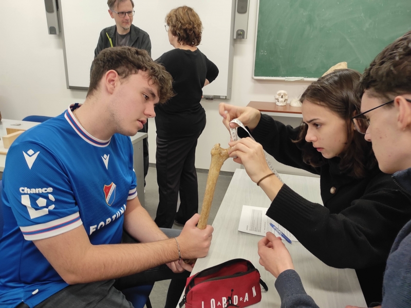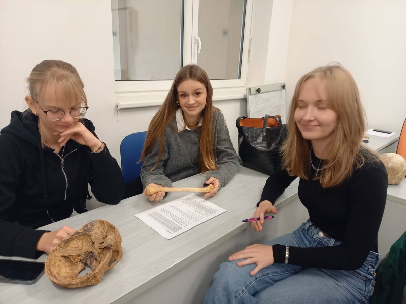 V laboratoři Přírodovědecké fakulty Ostravské univerzity, vybavené lidskými fosilními pozůstatky, se naši studenti na chvíli stali kosterními antropology. Pod laskavým vedením RNDr. Michala Živného, Ph.D., zkoumali lidské ostatky a učili se z nich „číst“ informace o životě jedince. Možná právě toto setkání usměrní jejich budoucí profesní cestu.