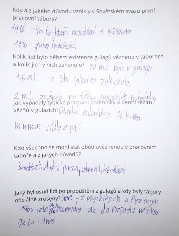 Ve čtvrtek 30. října se žáci 1.A zúčastnili knihovnické lekce věnované tématu GULAG. Program nabídl netradiční pohled na sovětské represe a snažil se žákům přiblížit tuto kapitolu dějin prostřednictvím moderních vzdělávacích metod. Studenti pracovali s tablety i komiksovou podobou výukových materiálů, které jim pomohly lépe pochopit každodenní realitu života v pracovních táborech. Díky propojení technologií a příběhů se mohli do tématu více vcítit a odnést si nejen nové poznatky, ale i silný osobní zážitek.