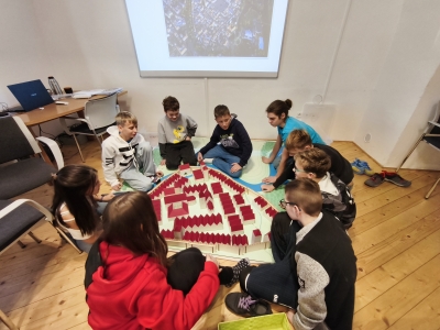 Během prvního programu se žáci přenesli do doby středověku a dozvěděli se, jak tehdy města vznikala, vypadala a co bylo ve městě nejdůležitější. Díky interaktivním aktivitám si mohli sami vyzkoušet, jaké to bylo být stavitelem středověkého města.