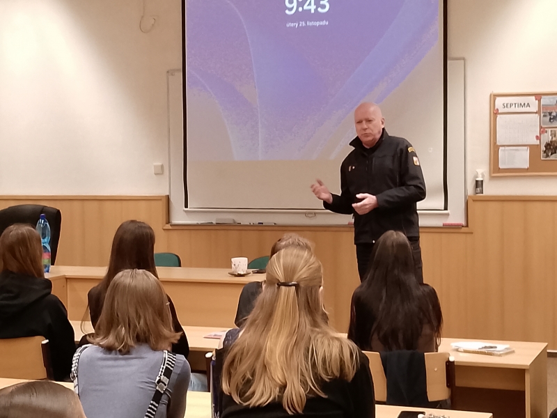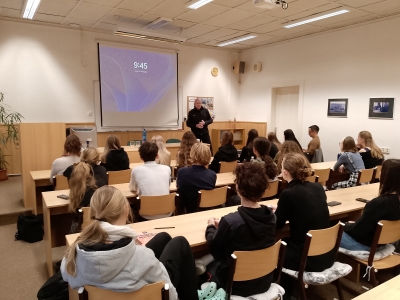 V úterý 25. listopadu přivítalo naše gymnázium vzácného hosta, kterým byl krajský ředitel HZS Moravskoslezského kraje brig. gen. Ing. Radim Kuchař. Pan generál si pro žáky 3. A a 7. P připravil zajímavou hodinovou přednášku, během níž posluchače seznámil se strukturou a úkoly hasičského sboru, poodhalil zákulisí činnosti operačního střediska a nastínil průběh zásahu od obdržení oznámení na tísňovou linku až po samotný příjezd hasičů na místo události. Závěrem pak zmínil požadavky, které musí splňovat uchazeč o místo v této složce integrovaného záchranného systému.