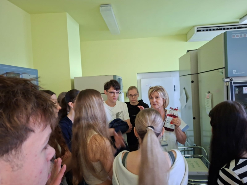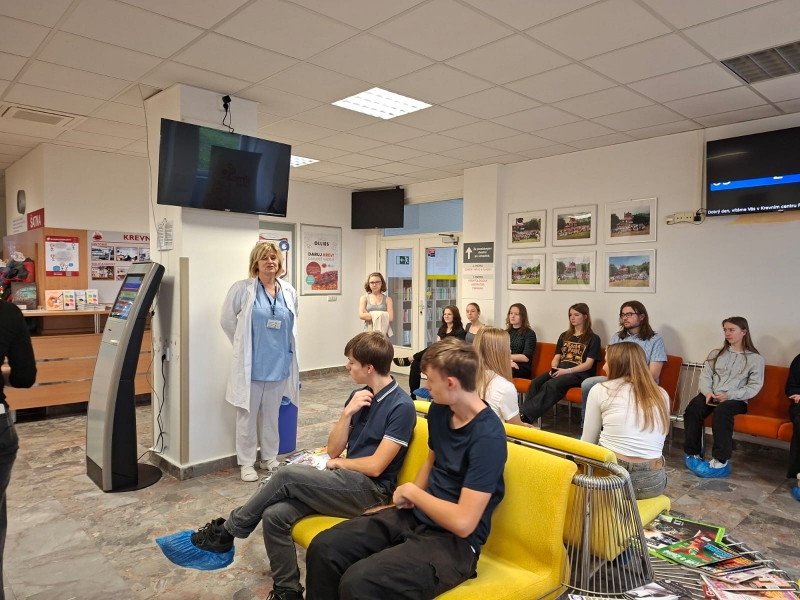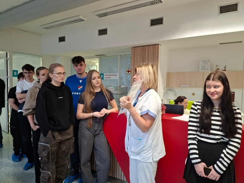 Během prohlídky si žáci prošli celou cestu dárce – od registrace, přes odběrové místnosti až po laboratoře, kde se krev dále zpracovává. Dozvěděli se, jaké podmínky musí splňovat každý dárce, jak probíhá samotný odběr a jak se krev následně využívá při léčbě pacientů.