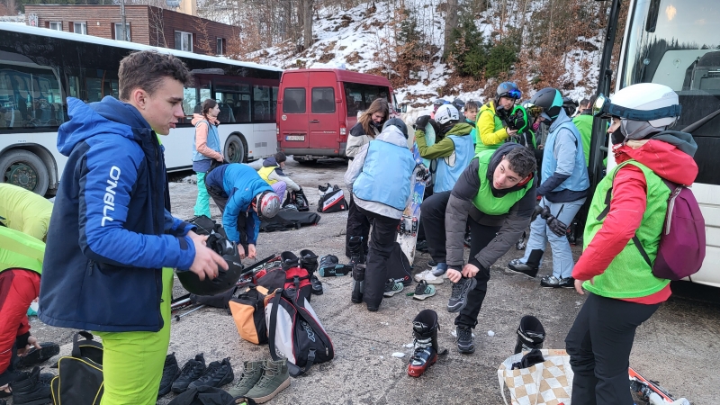 Dlouhé čekání je u konce! Dnes v brzkých ranních hodinách – zatímco zbytek města ještě spokojeně podřimoval – se před gymnáziem srotila skupina 44 odhodlaných lyžařů a snowboardistů. Cíl cesty? Slovenský revír Snowparadise Veľká Rača.