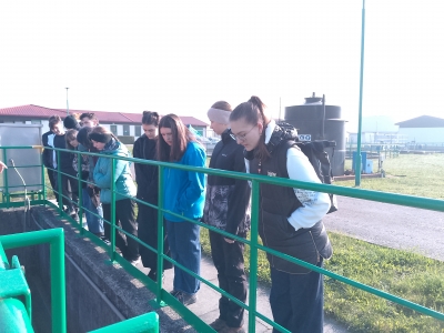 V rámci letošního Dne Země se v pátek 10. dubna žáci 5. P vydali na procházku do bohumínského Kopytova, kde si mnoha smysly, kterým jednoznačně vévodil čich, vychutnali poutavý výklad o způsobu čištění bohumínské splaškové vody. Dozvěděli se, kterými procesy musí znečištěná odpadní voda projít, než může pokračovat již bez závadného vlivu na životní prostředí do řeky Odry, a jaké další využití nacházejí odstraněné nečistoty.