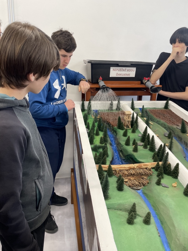 Dopoludňajší program patril návšteve Envirocentra v SIMe, kde účastníkov čakali nové a podnetné informácie o sile vody, jej pôsobení v rôznych prostrediach a jej význame pre život na Zemi. Interaktívna forma výučby vtiahla študentov do problematiky prostredníctvom zaujímavých prezentácií, praktických ukážok aj diskusií. Nechýbal ani vedomostný kvíz, ktorý preveril nielen získané poznatky, ale aj schopnosť spolupráce v medzinárodných tímoch. Študenti sa dozvedeli, ako voda formuje krajinu, aký má vplyv na ekosystémy a prečo je jej ochrana v dnešnej dobe nevyhnutná. Teória sa neustále prepájala s praxou – od demonštrácií erózie až po vysvetlenie obehových procesov vody v prírode.