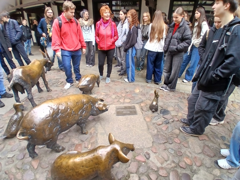 Exkurze začala přímo ve středu té nejstarší části – na tzv. Tumském ostrově. Gotická katedrála sv. Jana Křtitele, barokní areál Ossolinea, okázalá budova univerzity, budovy Jeníčka a Mařenky, goticko-renesanční radnice, pranýř, Most čarodějnic – to vše jsme během prohlídky města zvládli. Všude přítomní bronzoví trpaslíci zlepšovali i tak výbornou náladu všech účastníků a pěkné jarní počasí bylo bonusem navíc.