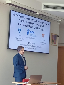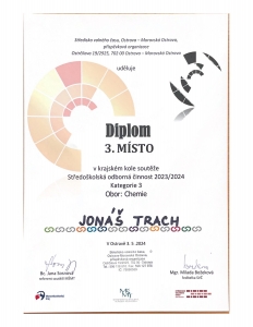 Další kolo této soutěže se konalo v pátek 3. května 2024 v prostorách TU VŠB v Ostravě-Poruby. Naši školu reprezentoval maturant Jonáš Trach ze 4.A, v soutěžním oboru chemie. Soutěže se zúčastnil s prací pod názvem Vliv degradačních procesů v kontextu se změnami obsahu vybraných polyfenolických látek ve víně. Tuto práci vypracoval na Katedře analytické chemie Univerzity Palackého v Olomouci, kam dojížděl provádět výzkum v rámci širšího projektu místní university.
