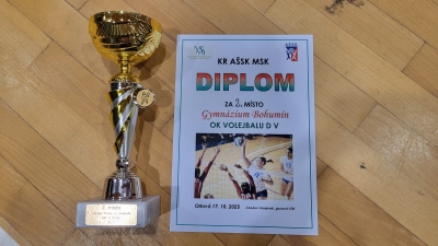 V pátek 17. října 2025 se v tělocvičně na gymnáziu v Orlové konalo okresní kolo ve volejbale dívek a chlapců středních škol. Chlapci svou obětavou a bojovnou hrou získali čtvrté místo. Dívky po fantastickém výkonu, kdy prohrály jen s favorizovanou Orlovou, vybojovaly úžasné druhé místo. Odměnou jim byl diplom, stříbrné medaile, krásný pohár a hlavně nepopsatelný pocit zaslouženého vítězství ve třech ze čtyř těžkých a napínavých zápasů.