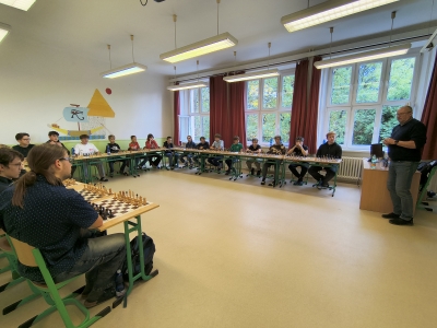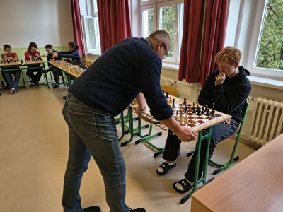 V úterý 21. října se již po 29. střetl bohumínský místostarosta ing. Petr Vícha s žáky našeho gymnázia při královské hře. Hrálo se na dvaceti šachovnicích a naši žáci táhli černými figurami.