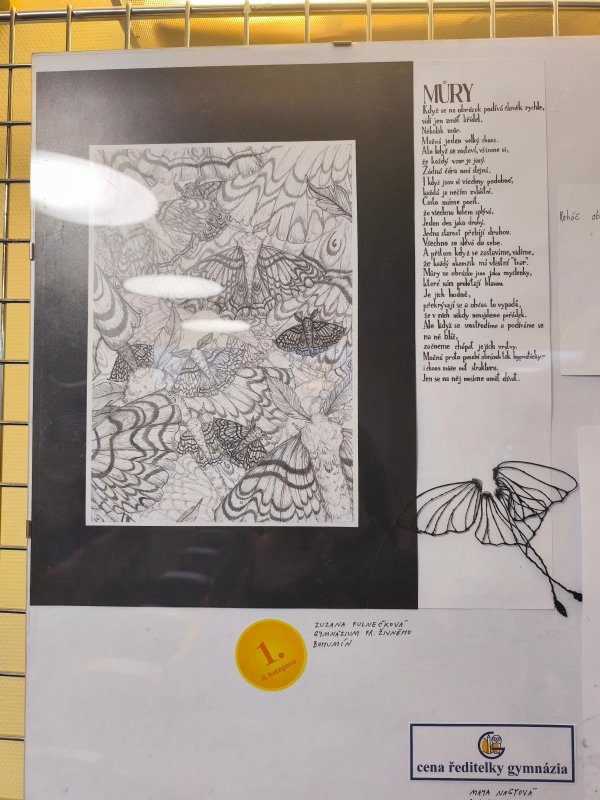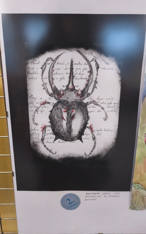 V úterý 24. února proběhla slavnostní vernisáž spojená s vyhodnocením literárně-výtvarné soutěže Malovaný svět, kterou organizovalo Gymnázium Komenského v Havířově. Letošní téma znělo Hmyzí království a v silné konkurenci škol z celého regionu se našemu gymnáziu podařilo získat přední umístění hned ve dvou kategoriích.