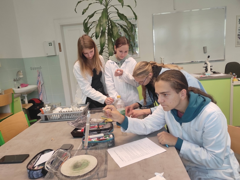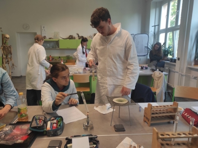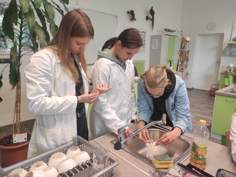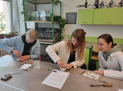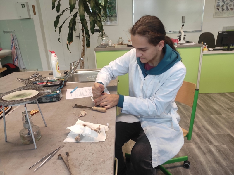 Víte, jak dokázat v kostech například uhličitan nebo vápník? Žáci biologického semináře ze septimy už ano.