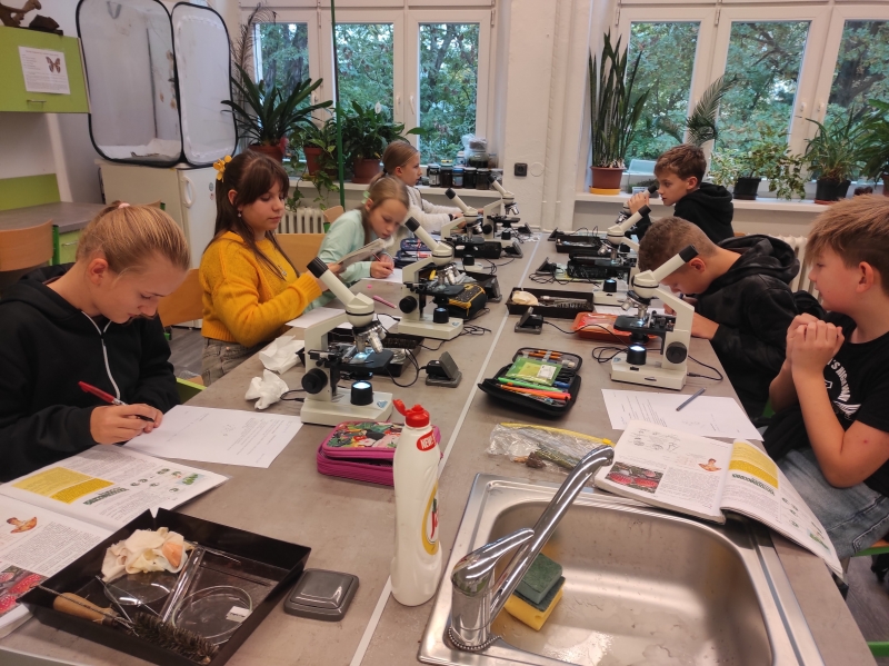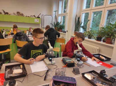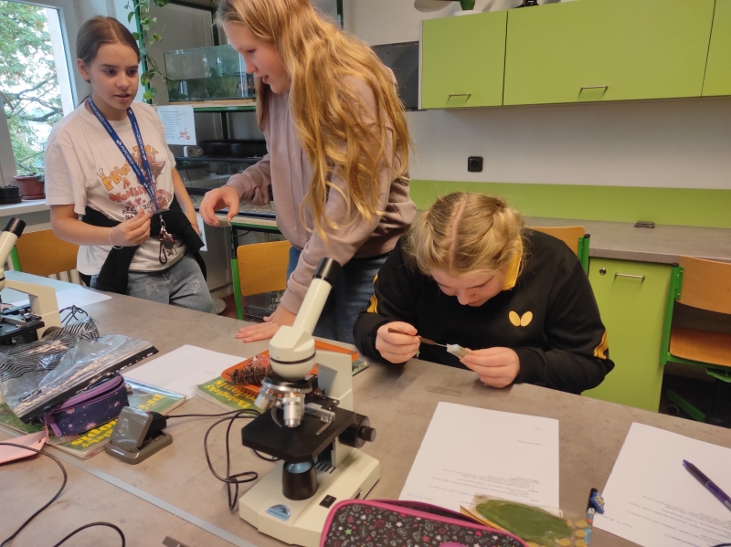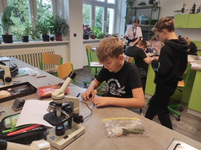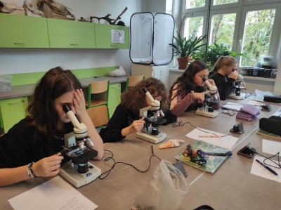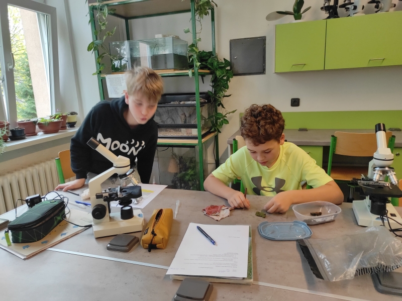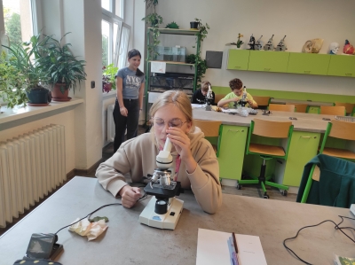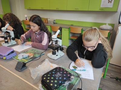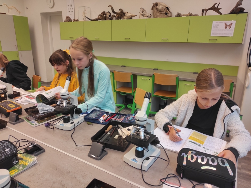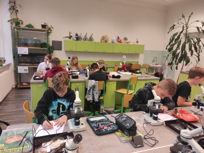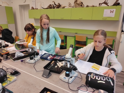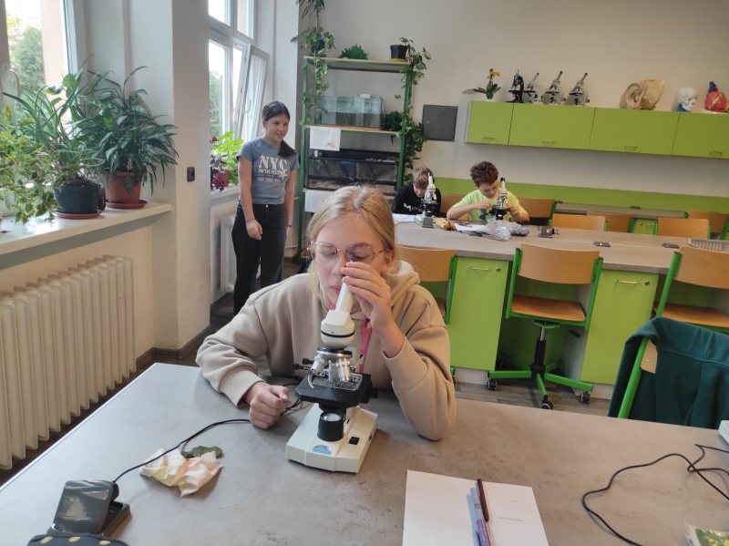V minulých hodinách biologie se žáci primy podívali do laboratoře biologie, kde si prakticky ověřili znalosti z oblasti mikroskopování. Pozorovali jednobuněčnou řasu zrněnku.