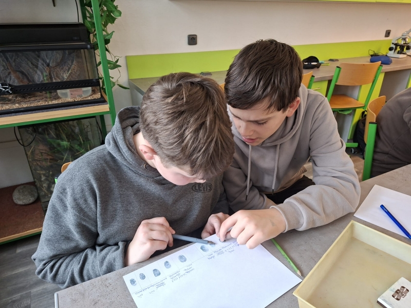 Smyška, závit, dvojsmyčka nebo vír. Jak vypadají otisky prstů se přesvědčili žáci tercie.