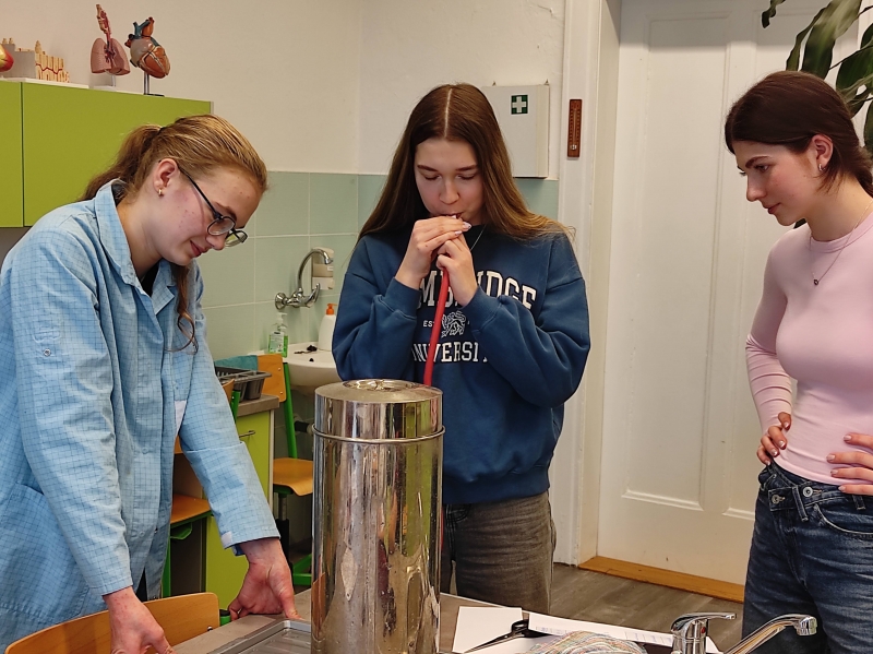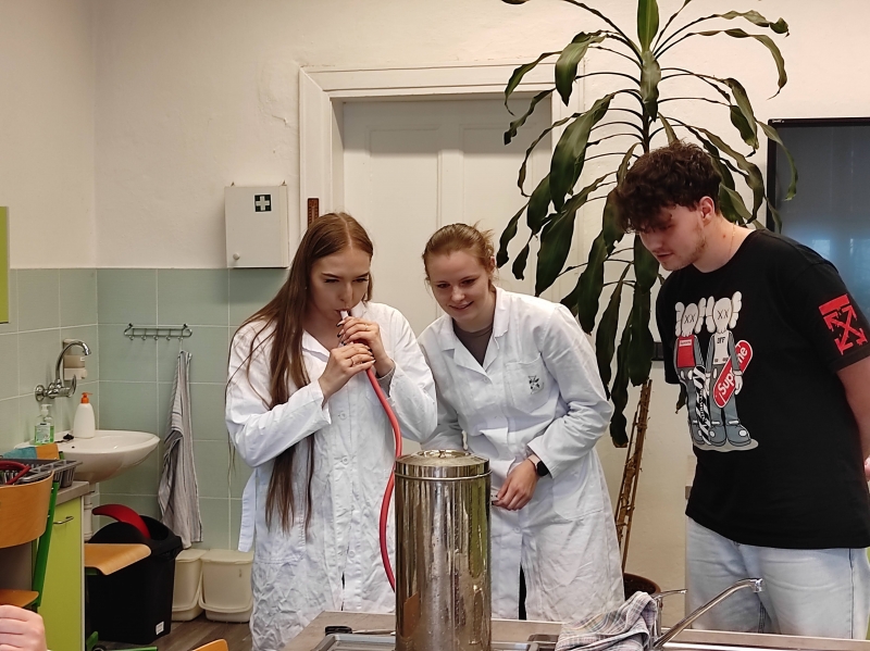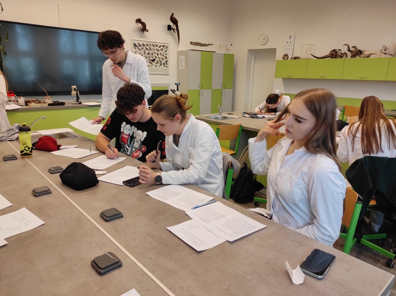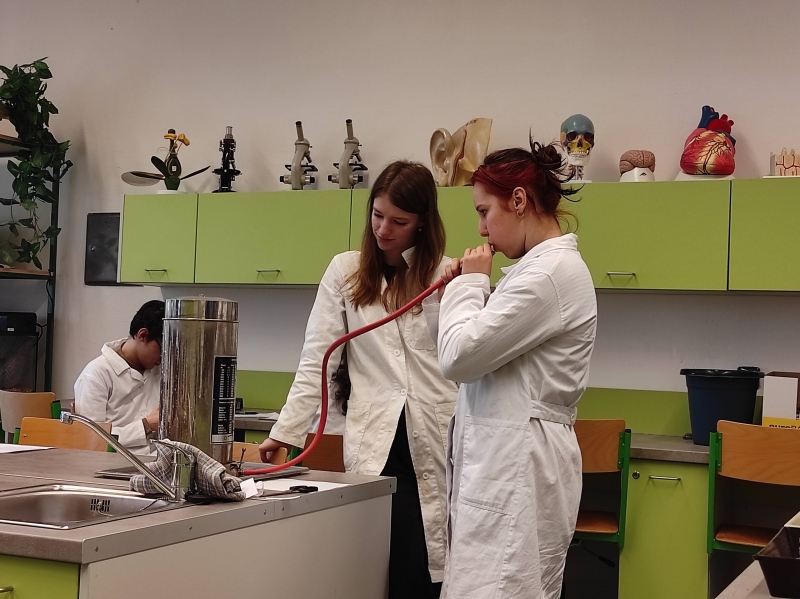 V úterním semináři si žáci septimy měřili dechovou frekvenci v klidu a po námaze. Také si vyzkoušeli, jak dlouho vydrží zadržet dech za stanovených podmínek. Největším zážitkem bylo měření vitální kapacity plic.