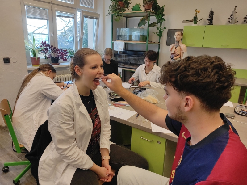 Jak působí na zubní sklovinu různé nápoje? Kde je na jazyku nejvyšší hustota chuťových pohárků pro vnímání sladka? Jakou rychlostí postupuje spolklé sousto trávicí trubicí? Nejen na tyhle, ale i na nespočet dalších otázek odpovídali žáci biologického semináře.